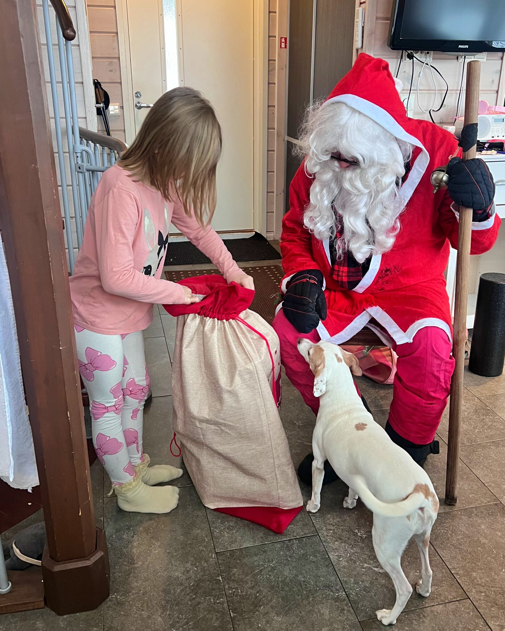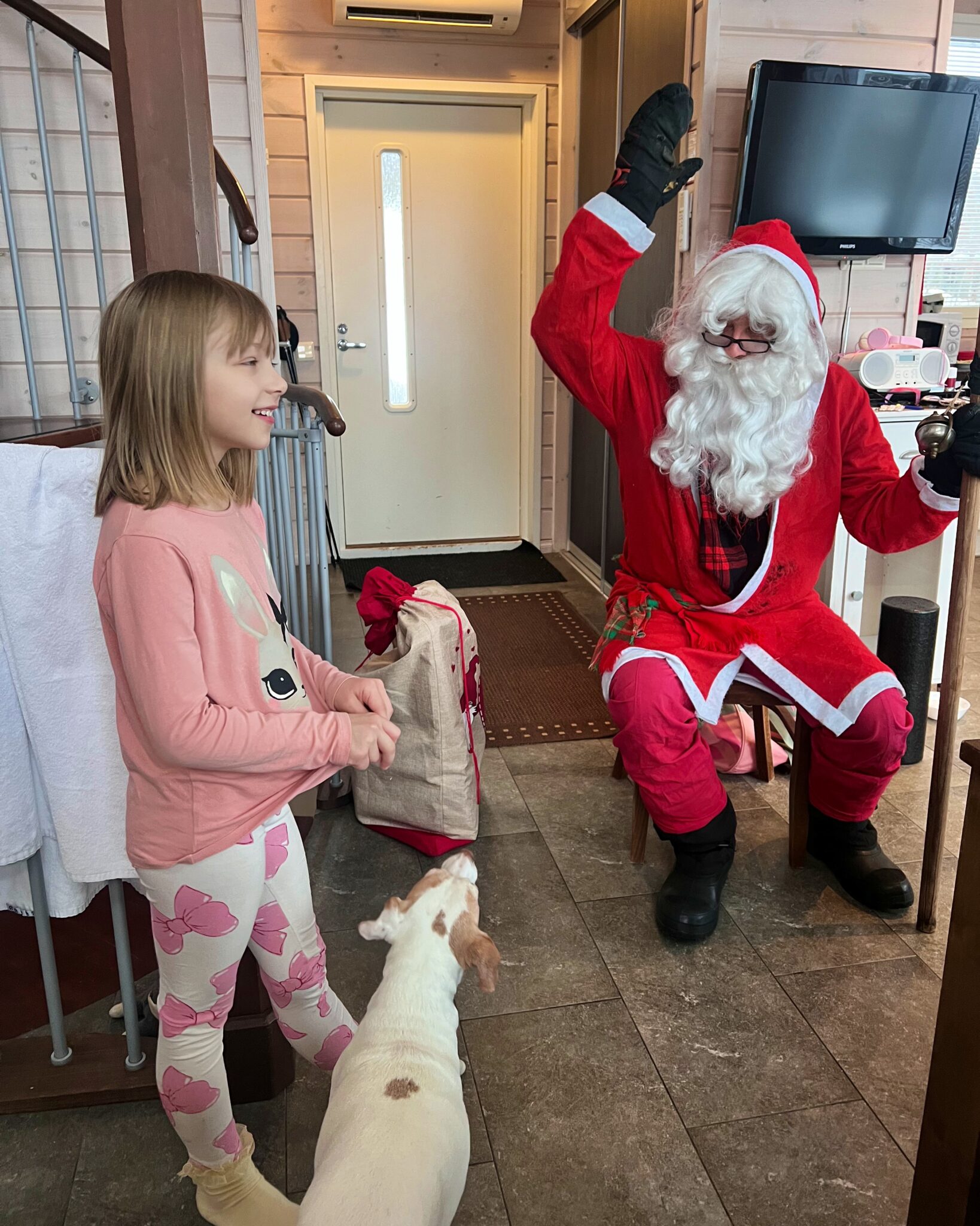 Aattona heräiltiin rauhassa ja aamupalan jälkeen minä ja Tuukka käytiin Ole Fit -kuntosalilla tekemässä treeni. 💪🏼🩷  Joulupukki tuli mökkiin vierailemaan puolen päivän jälkeen. Ja sitten käytiin syömässä joulupäivällinen upeassa Ravintola Liiterissä alku illasta. ❤️ Ruoka oli ihan todella hyvää ja palvelu myös!